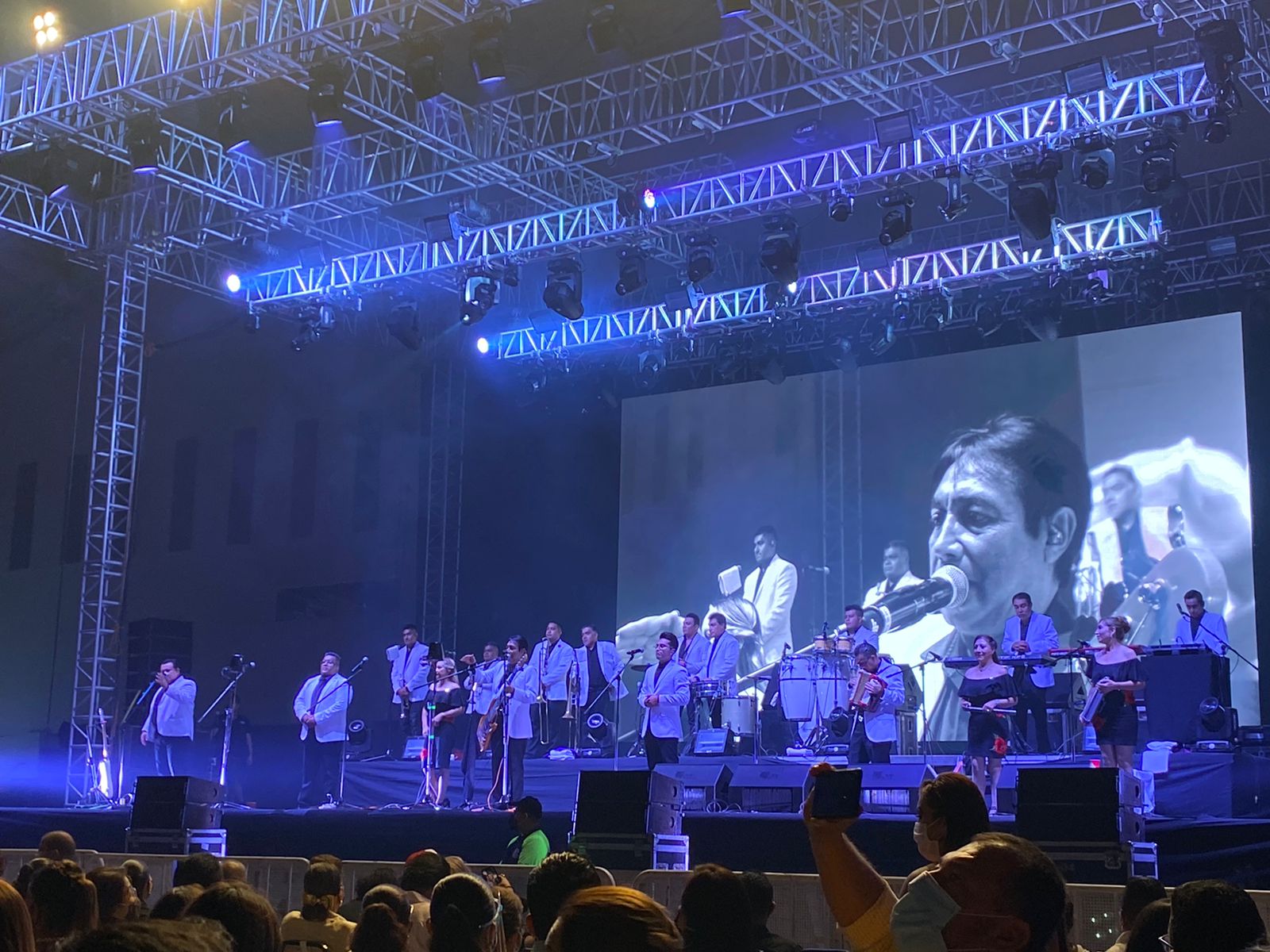 Minutos después de las nueve la noche Los Ángeles Azules subieron al escenario para deleitar a los asistentes con más de dos horas de éxitos que uno a uno fueron ovacionados y bailados, desde sus asientos, por el público asistente.