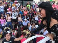 Cecy "La Sexy" Rodríguez dando regalos desde El Fiera Carro Alegórico