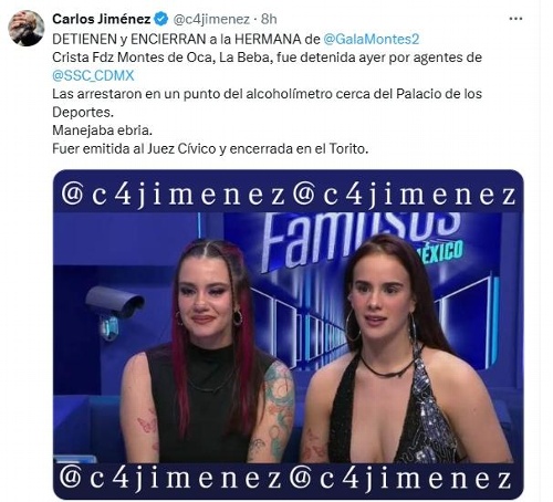 De acuerdo con el periodista Carlos Jiménez, conocido como C4 Jiménez, la influencer no pasó la prueba y fue trasladada al Centro de Sanciones Administrativas y de Integración Social, mejor conocido como El Torito, donde permaneció varias horas bajo disposición del juez cívico.