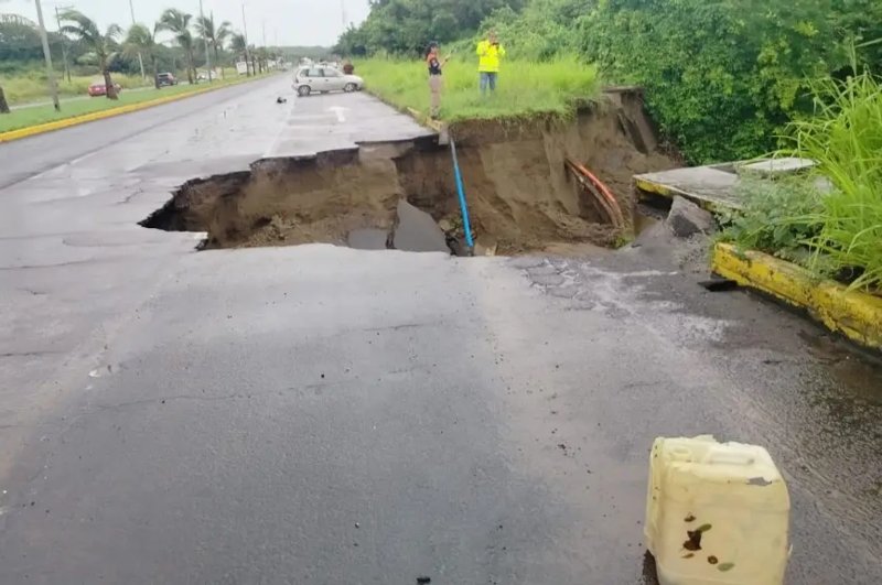 El socavón se registra en la carretera Veracruz-Alvarado, que ocupa prácticamente todo un carril y tiene una profundidad de unos 2 a 3 metros.