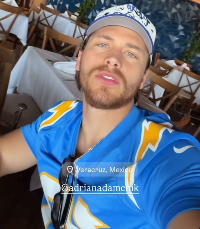 En una primera historia, se observa a Aldo en compañía de otra personas en un restaurante mientras probaba ostiones, y vestía de una playera del equipo de Los Ángeles Chargers del Futbol Americano de Estados Unidos.