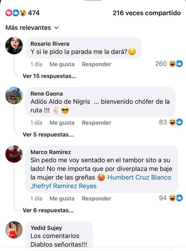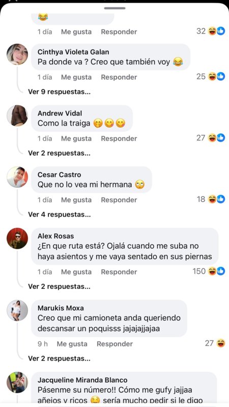 "Pa dónde va? Creo que también voy", "¿En qué ruta está? Ojalá cuando me suba no haya asientos y me vaya sentado en sus piernas", Pásenme su número", se lee en algunos comentarios.