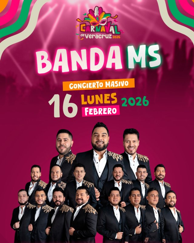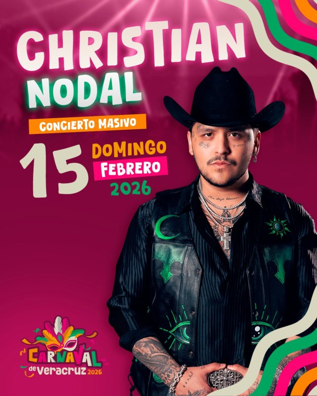 Con una programación artística que combina géneros, públicos y escenarios, el Carnaval de Veracruz 2026 contará con la participación estelar de Carlos Rivera, Christian Nodal, Banda MS y Mon Laferte, intérpretes de talla internacional que encabezarán la edición 102 de la fiesta de todos, a celebrarse del 10 al 18 de febrero.