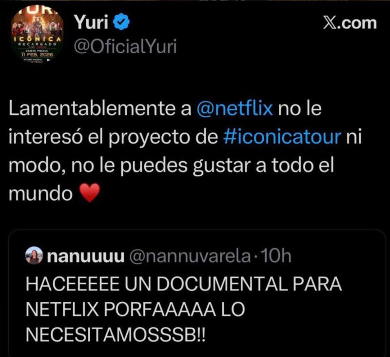 “Lamentablemente a @netflix no le interesó el proyecto de #iconicatour ni modo, no le puedes gustar a todo el mundo ♥?”.