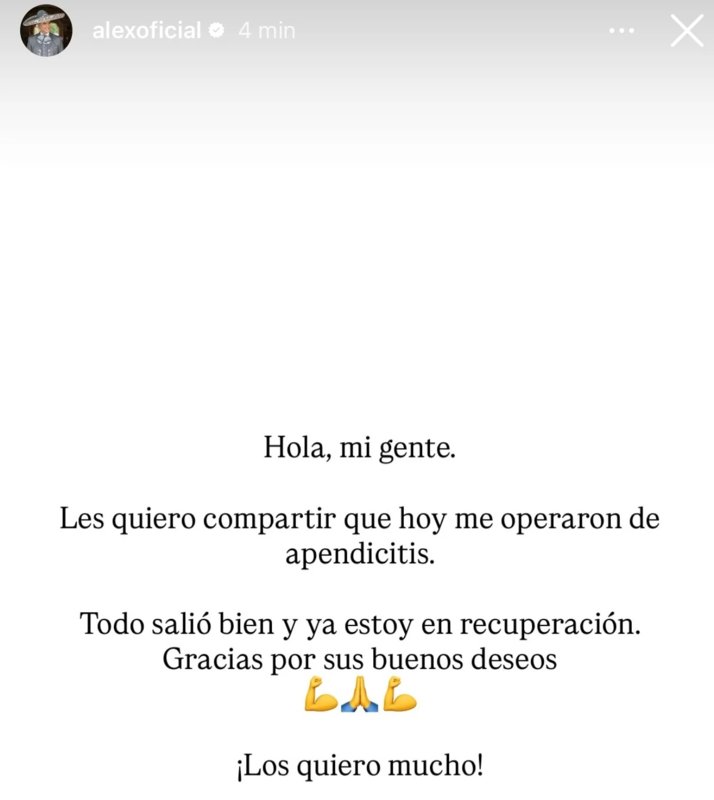 Por medio de una publicación en sus historias de Instagram, el reconocido intérprete mexicano informó a sus seguidores que tuvo que someterse a una cirugía de apendicitis.