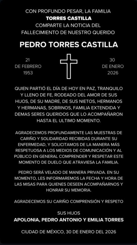 En el comunicado compartido por la familia se dio a conocer que será velado de manera privada.